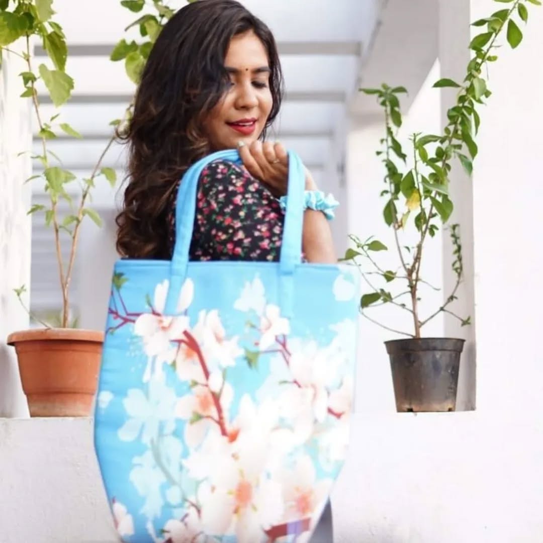 Carry elegance and freshness wherever you go with the Sky Bloom Tote – your premium everyday companion.
